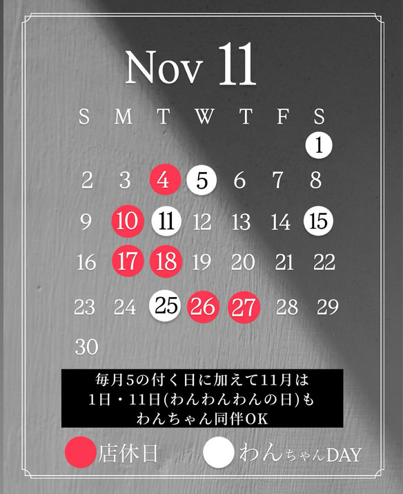 ⚫︎⚫︎11月の店休日&わんちゃんDAYのお知らせ⚫︎⚫︎