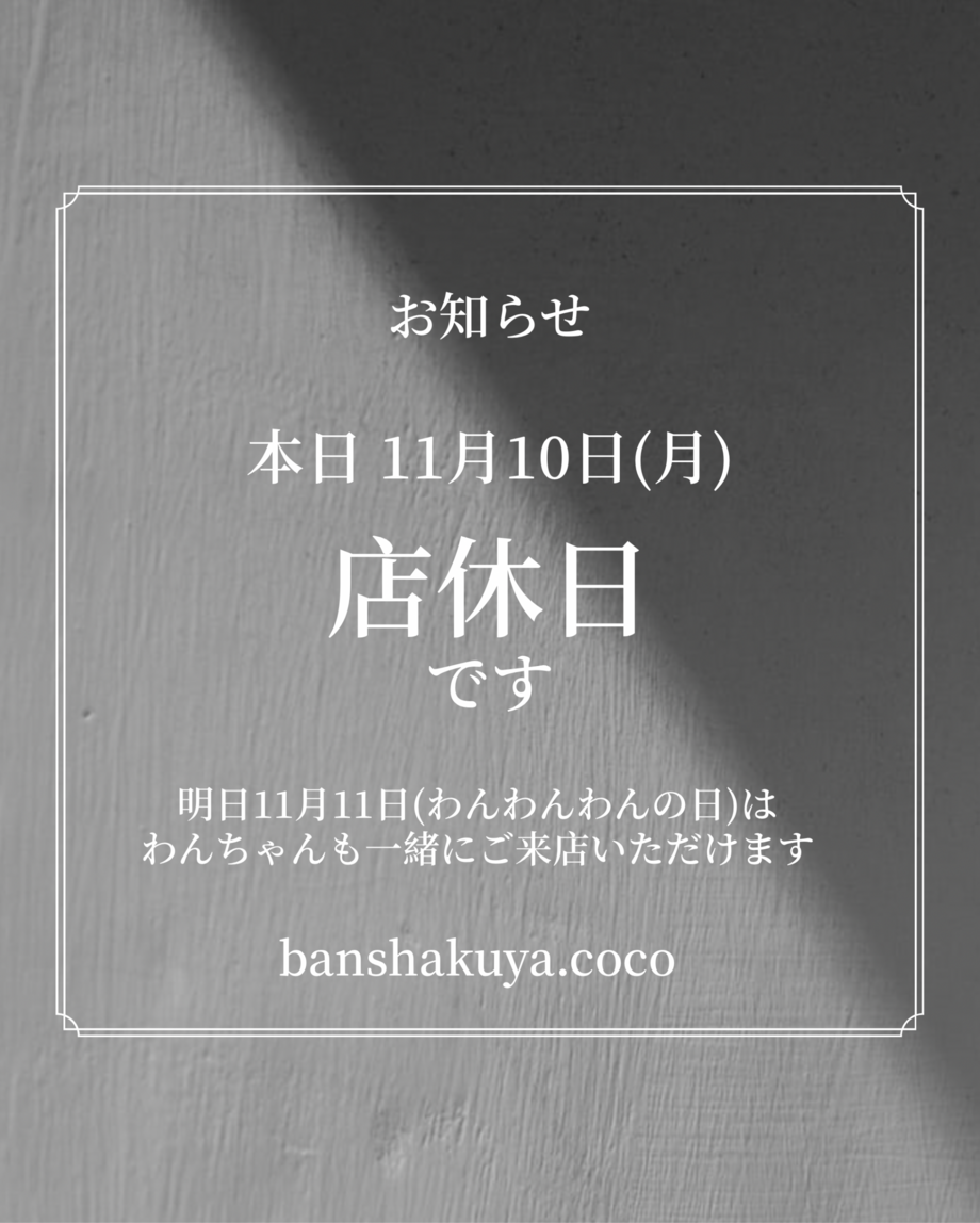 本日11月10日(月)は【店休日】です