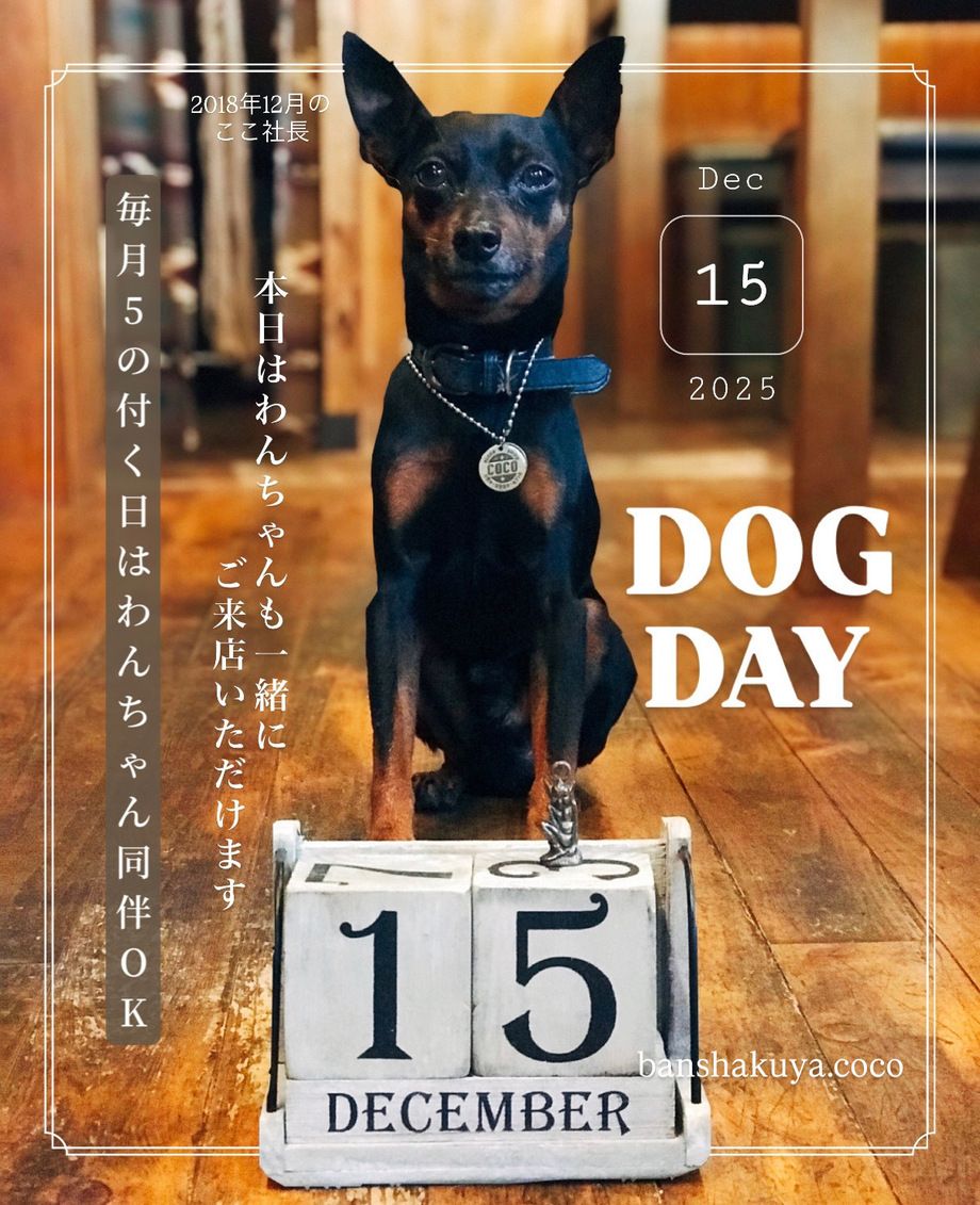 🐶毎月⑤の付く5日・15日・25日はワンちゃん同伴OK🐶.
