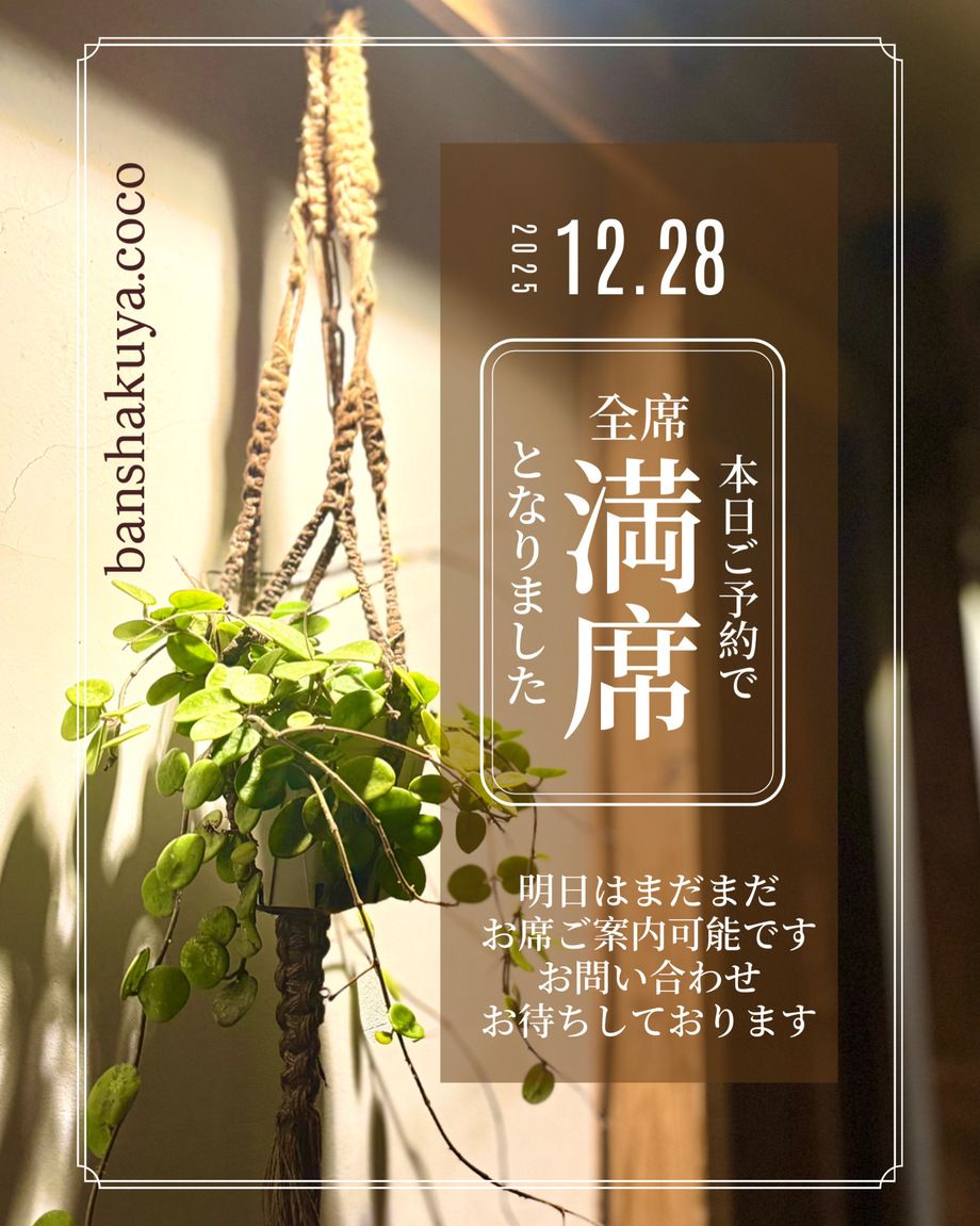 本日12月28日(日)はご予約で全席【満席】となりましたm(_ _)m