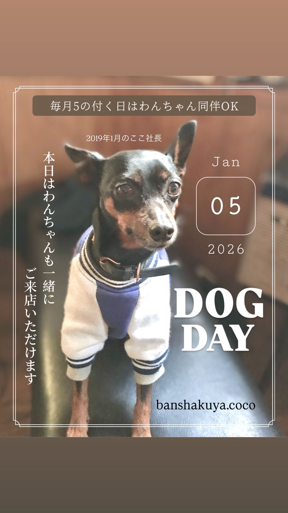 🐶毎月⑤の付く5日・15日・25日はワンちゃん同伴OK🐶.
