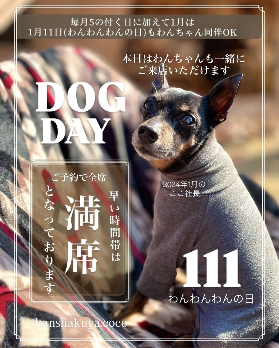 毎月⑤の付く日に加えて1月は1月11日(わんわんわんの日)もわんちゃん同伴OK🐶♪