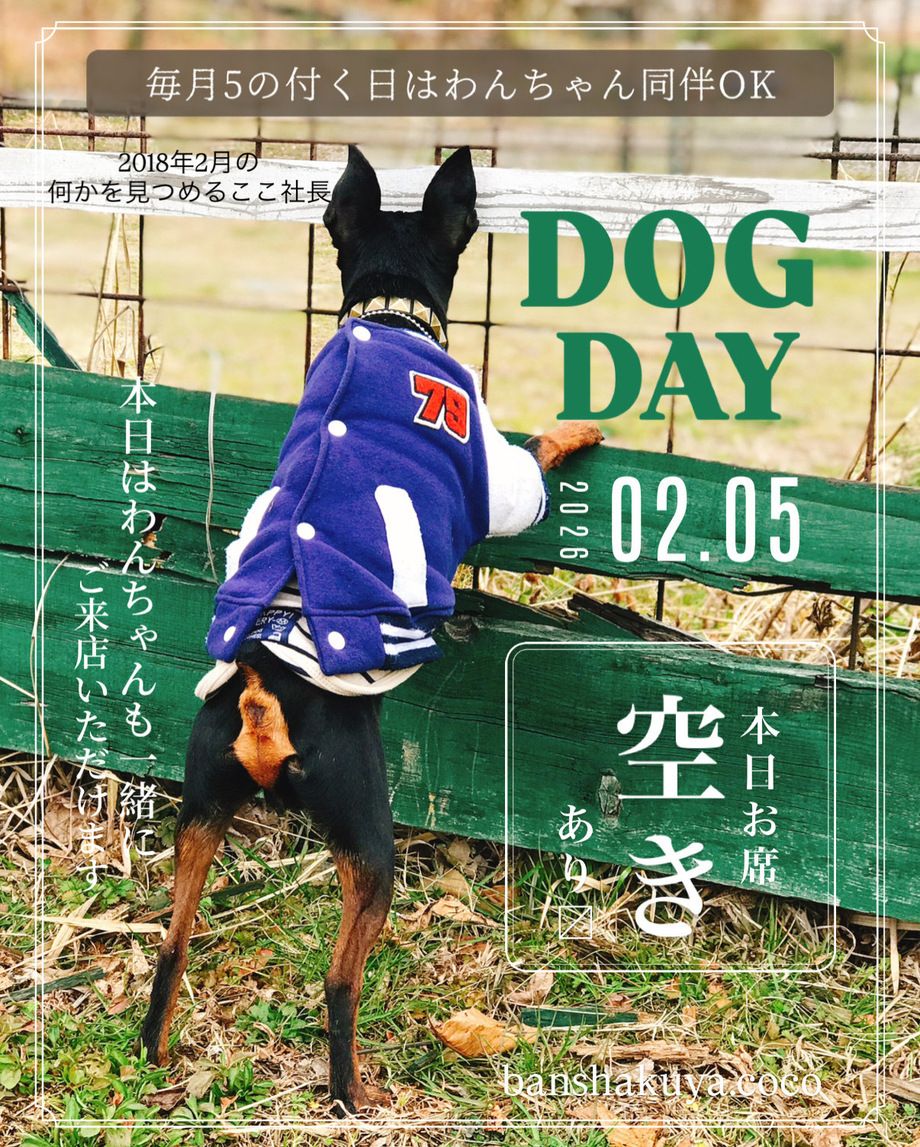 🐶毎月⑤の付く5日・15日・25日はワンちゃん同伴OK🐶.