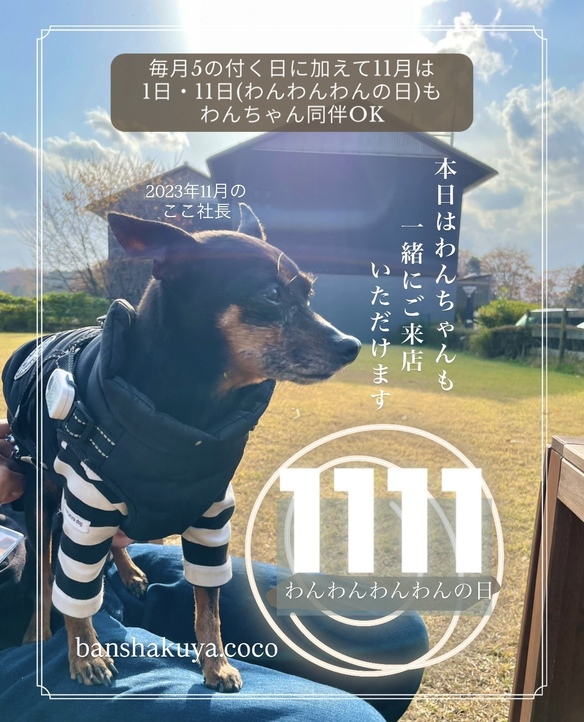 毎月⑤の付く日に加えて11月は1日・11日(わんわんわんの日)もわんちゃん同伴OK🐶♪