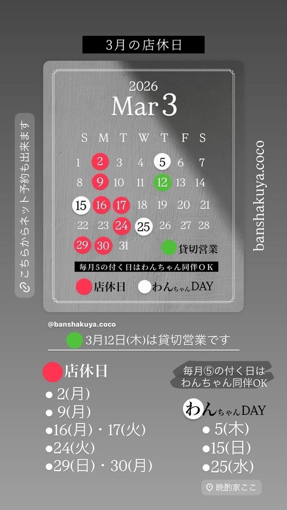 ※3月12日(木)は貸切となっております