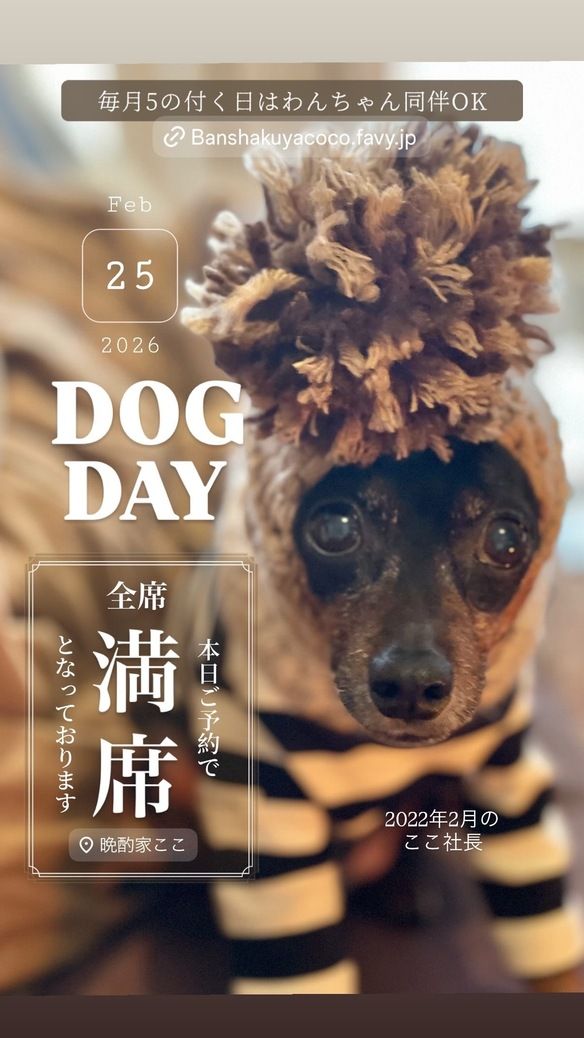🐶毎月⑤の付く5日・15日・25日はワンちゃん同伴OK🐶.
