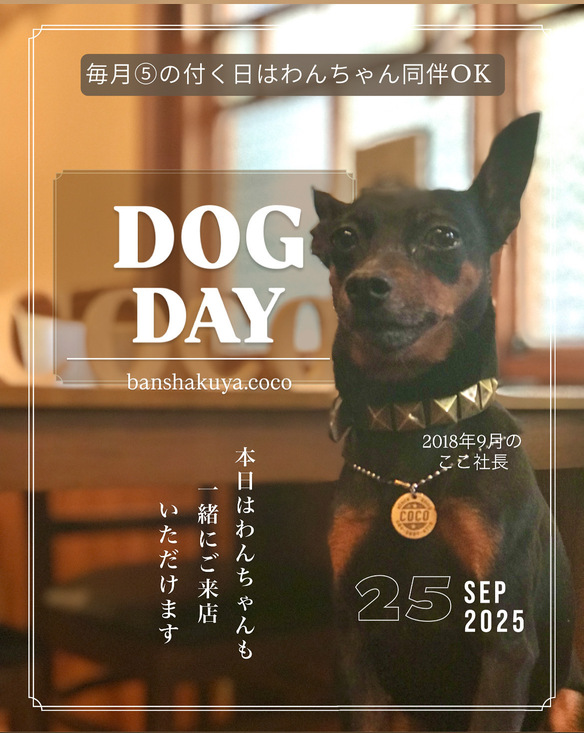 -毎月⑤の付く日はわんちゃん同伴OK-