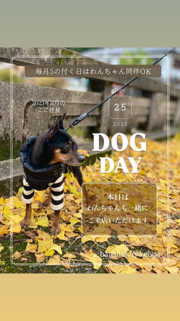 🐶毎月⑤の付く5日・15日・25日はワンちゃん同伴OK🐶.